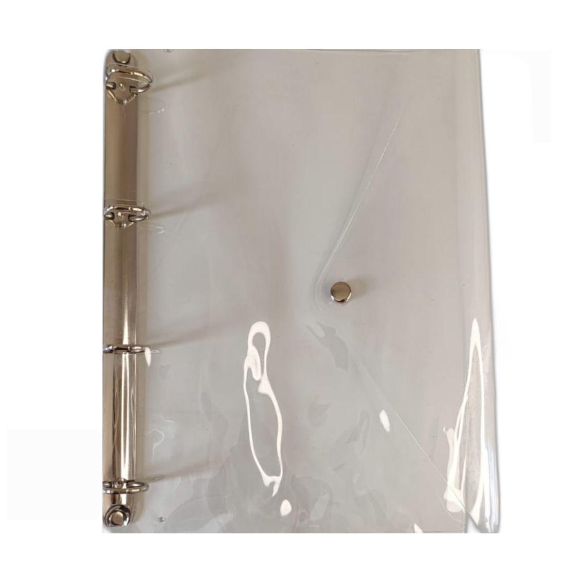 • Organizador de Papeis, Fichário Transparente com fechamento em botão e 4 argolas