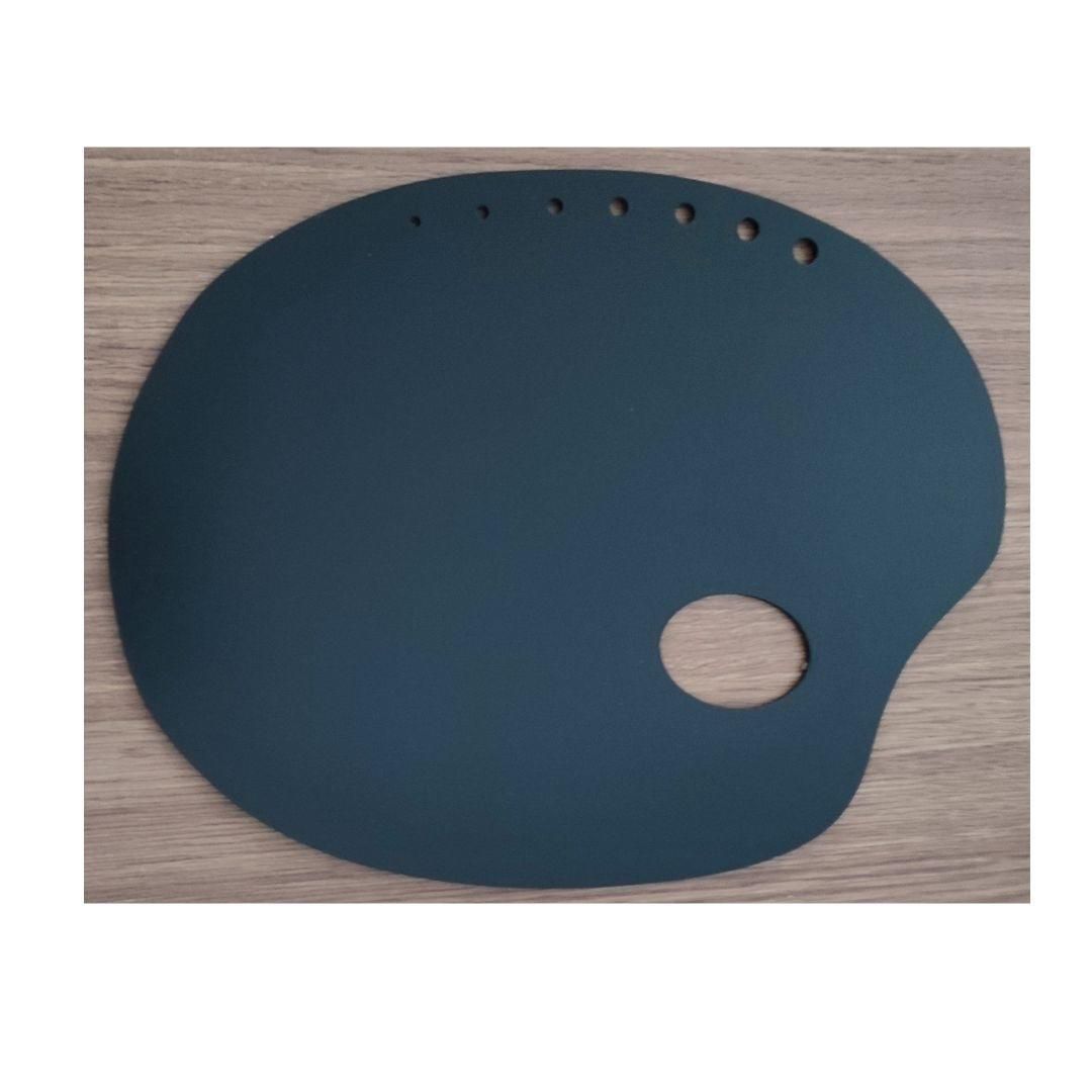 • Paleta para pintura artística fabricadas MDF , com fino acabamento bordas arredondadas e com cavidade . De configuração anatômica, tendo sua superfície muito resistente a solventes.
