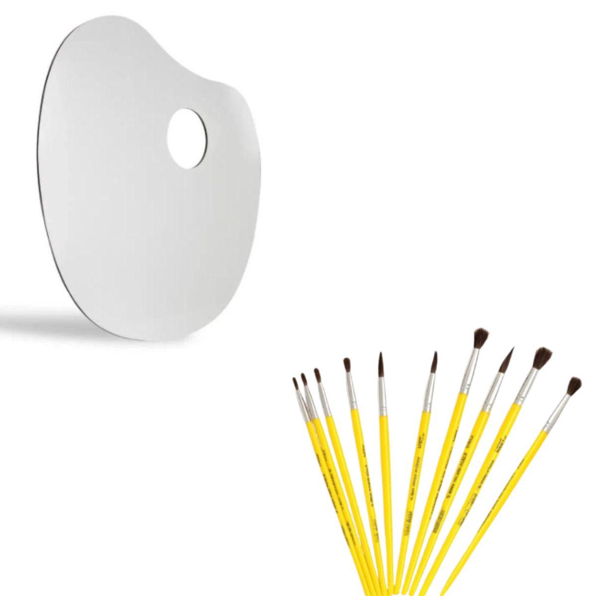 Kit Gode Paleta p/ Pintura em Formato Anatômico Oval Branco 21x17 cm c/ 10 Pinceis