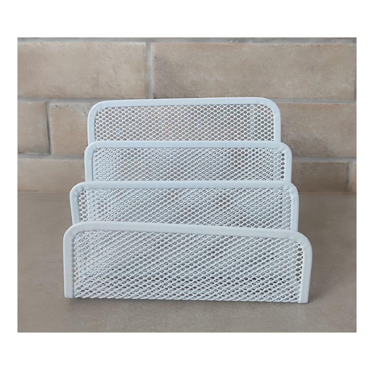 • Organizador de mesa com 4 divisórias, para papeis lembretes post-it, etc, produzido em metal na cor branco com pintura eletrostática muito resistente a corrosão, bonito e sofisticado para dar um toque de modernidade em seu ambiente de trabalho ou em seu homeoffice.